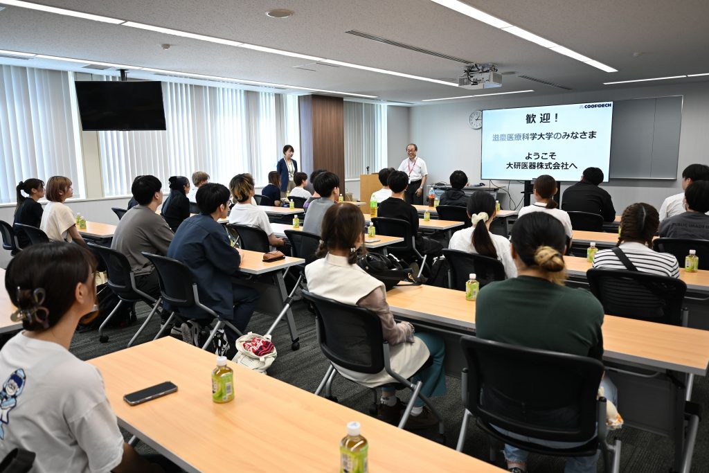 先日、在学生が大阪府和泉市に本社を構える研究開発型医療機器メーカー「大研医器株式会社」を訪問し、会社説明と工場見学をさせていただきました。医療機器メーカーとして国内外で高い評価を受ける企業の現場を直接見られる貴重な体験となりました。