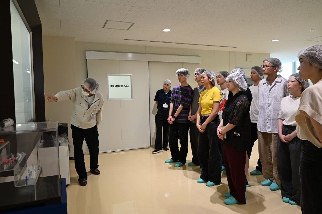 続いて、敷地内にある工場を見学しました。クリーンルームでの製造工程や、精密な部品の組み立て作業を間近で見ることができました。