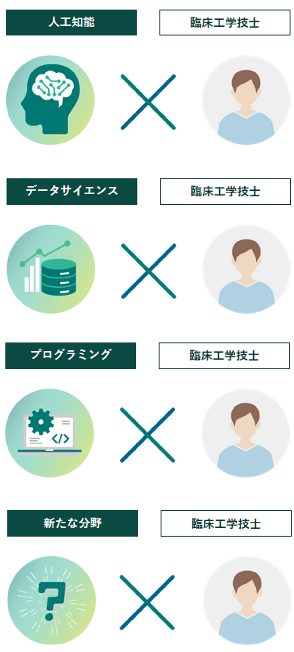 人工知能をはじめ、データサイエンス、プログラミング、未来の新たな分野において、医療・工学のスペシャリストならではの視点で考え、行動できる人材を目指すことができます。