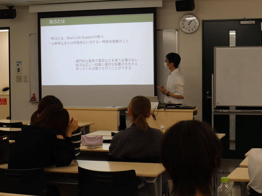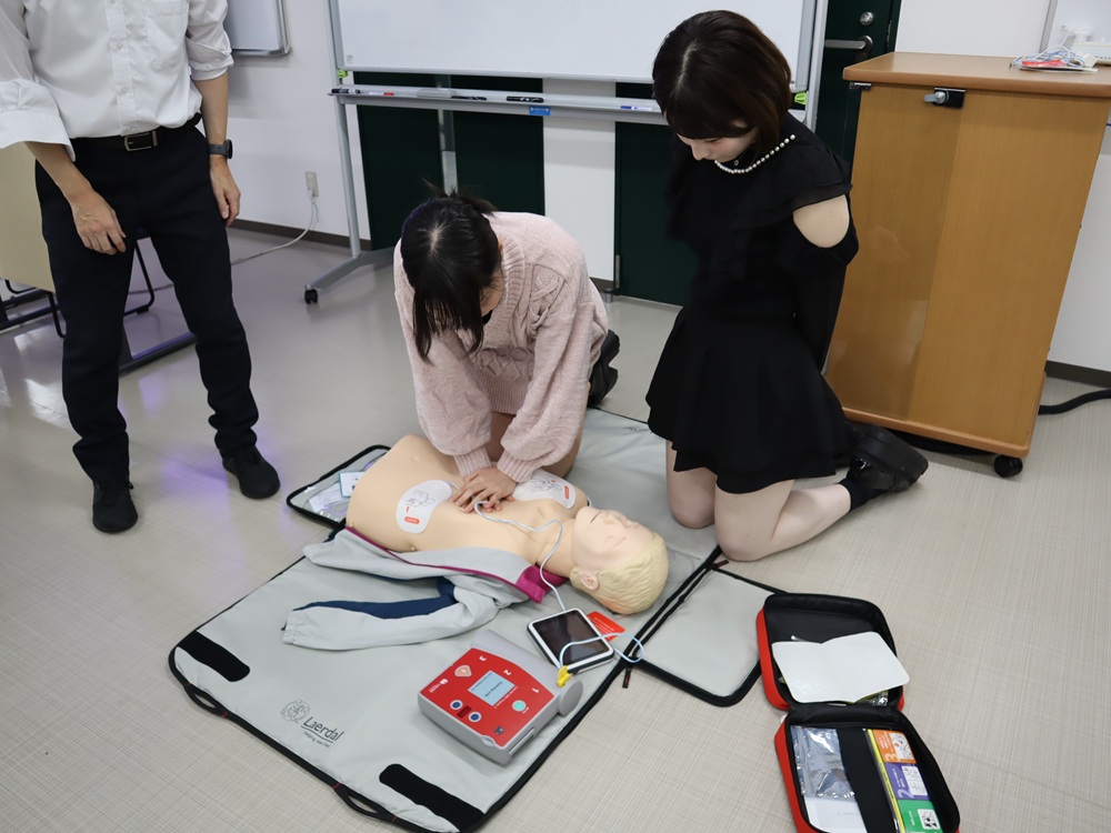 学生からは「見た目以上に体力がいる!」「いざという時も複数名で交代しながらのほうが良さそう」といった声や「これバッテリどうなってるんだろう?」と臨床工学技士を目指す学生らしく、機械としてのAEDに関心を示す声も出ていました。
