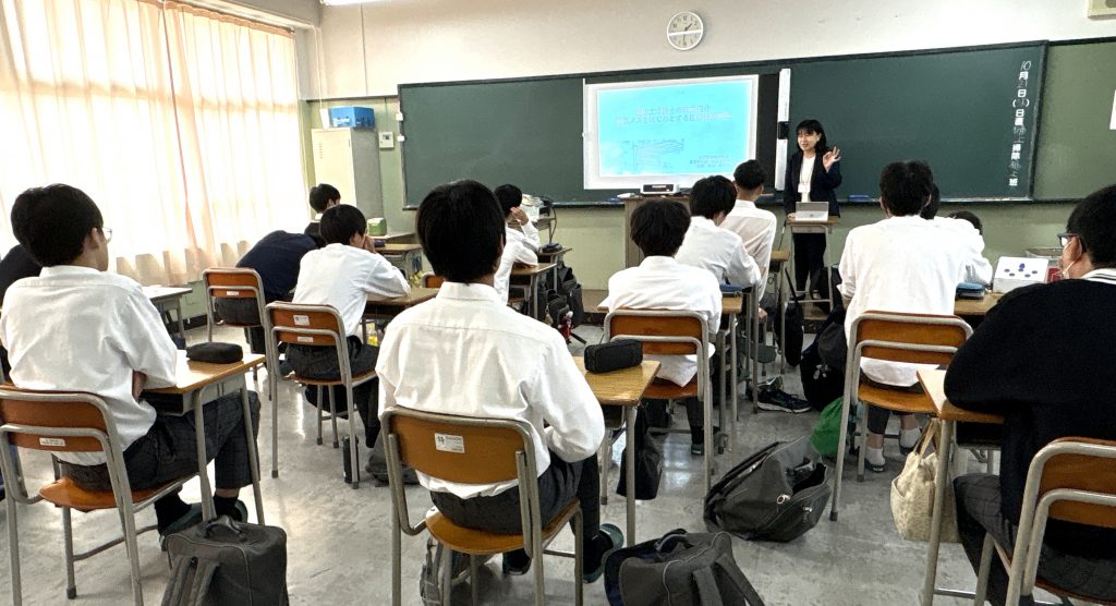 高大連携の一環として、星翔高校の工業科・普通科の2年生を対象に、臨床工学技士の仕事を紹介する出前授業を行いました。